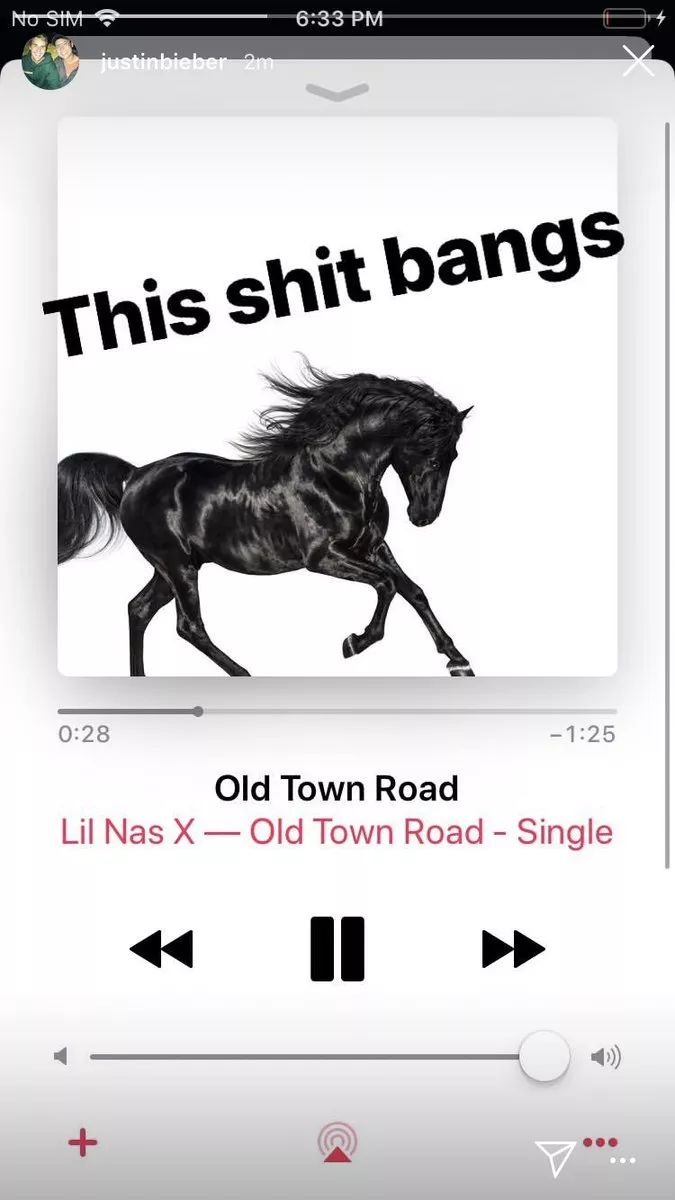Justin Bieber在Instagram晒出听歌动态,并且大赞歌曲。
